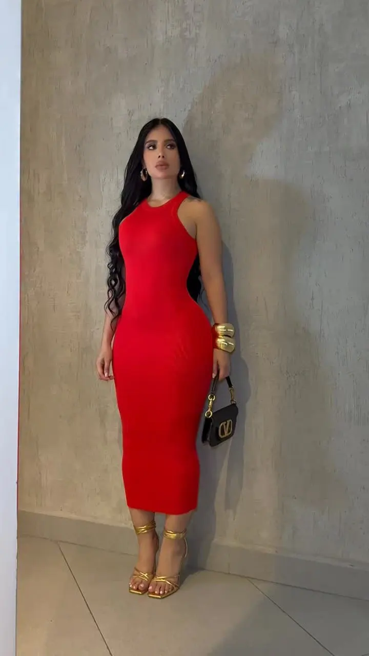 ❤️ Vestido rojo ajustado, elegante y poderoso. Realza la figura con su tejido elástico de alta calidad. Ideal para cenas o eventos especiales.